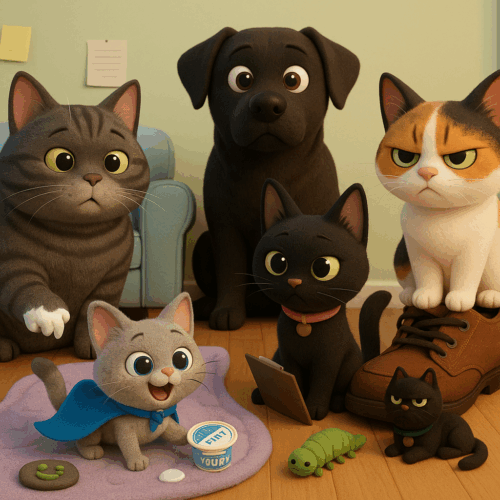 Roll call. Who ELSE woke up with their tail braided and their snacks alphabetized by shape? Iaia was gone for like 17 minutes and Chimpi already spilled a bowl of kibbles, tripped over her own cape, and declared herself “temporary assistant minion-in-chief.” I’m not even kidding. I am—