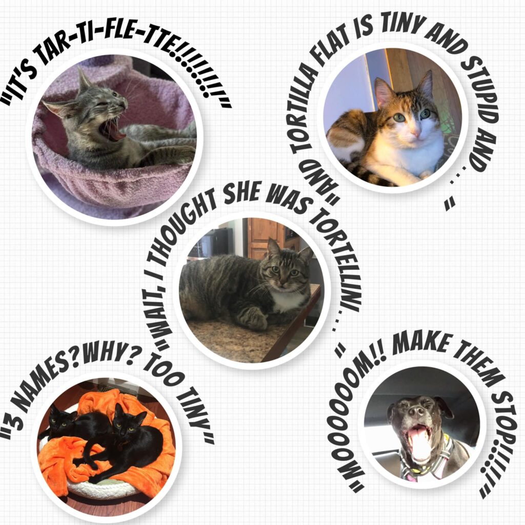I literally saw her put her paw in my food, then whisper “no witnesses.” She’s cute but she’s chaos. Also, Tarti tried to ride me like a horse.